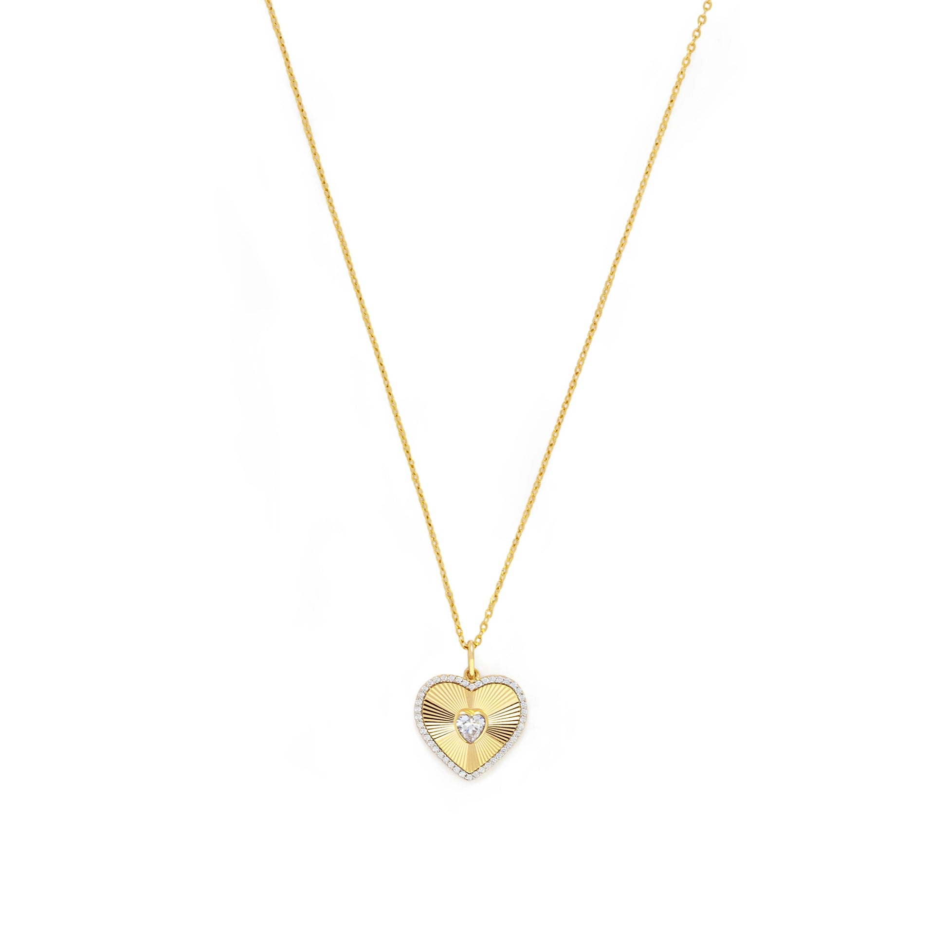 Add a touch of elegance to your look with this 925 sterling silver necklace, plated in 18K gold. The enchanting heart pendant features a beautiful diamond cut and sparkling zirconia stones, making it perfect for any occasion. A must-have for your jewelry collection!