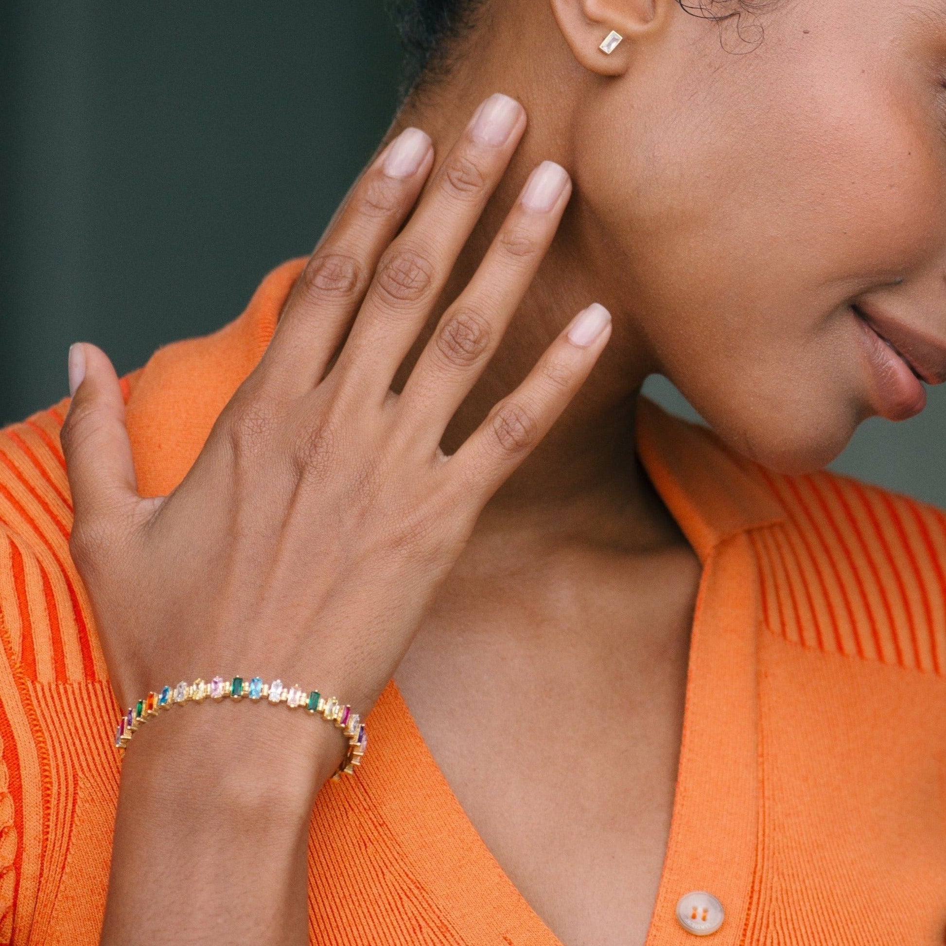 Discover our colorful rainbow bracelet, a charming accessory that adds a pop of color to any outfit. This versatile bracelet is a perfect present for yourself or others, capturing the joyful essence of rainbows. Shine bright and spread smiles with this stunning piece.