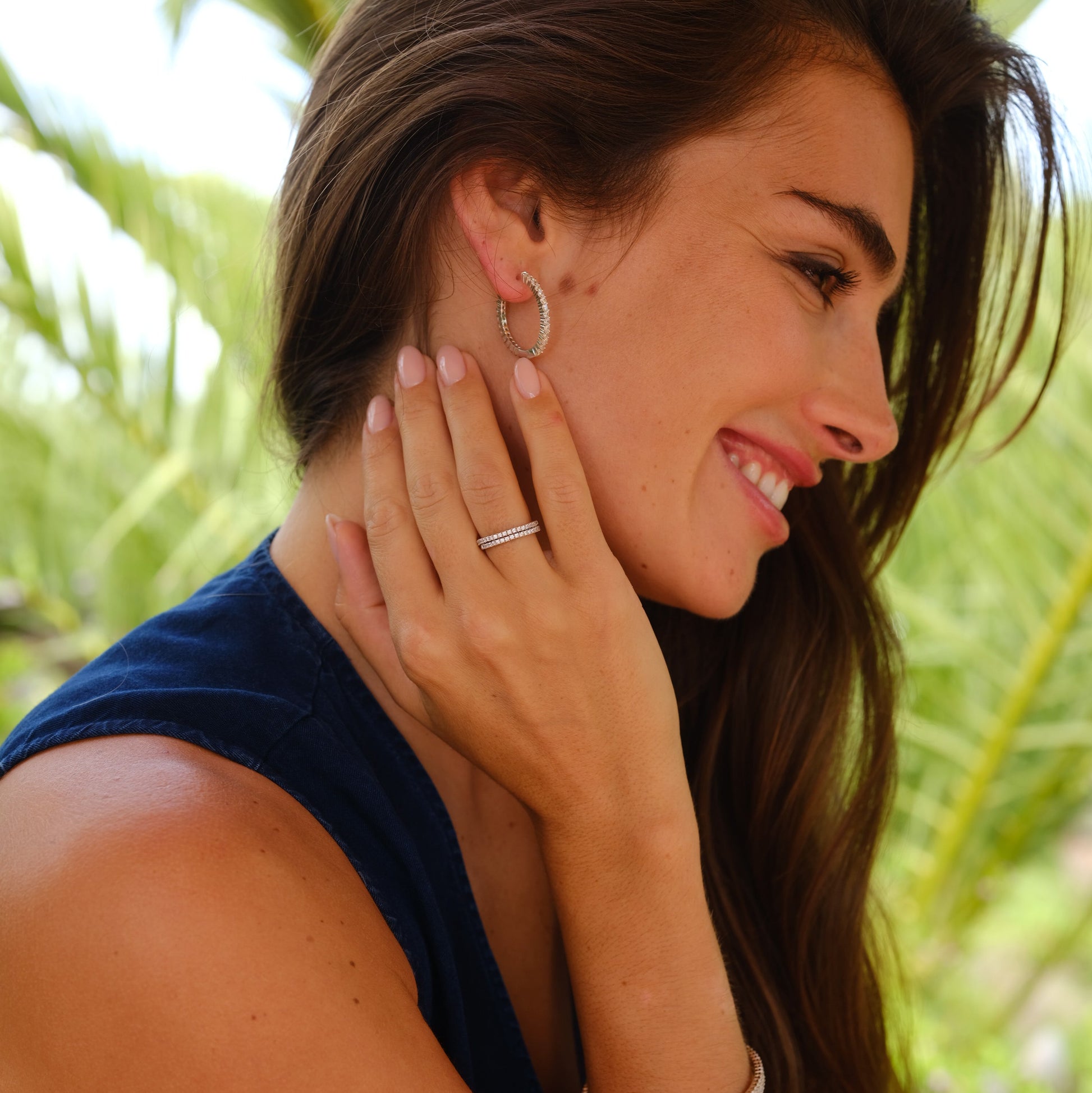 Sparkle with every movement in these stunning 925 sterling silver creole earrings, adorned with dazzling zirconia stones. The perfect blend of luxury and elegance, these earrings add a brilliant touch to any ensemble. Whether for a special occasion or everyday glamour, they’re designed to make you shine.