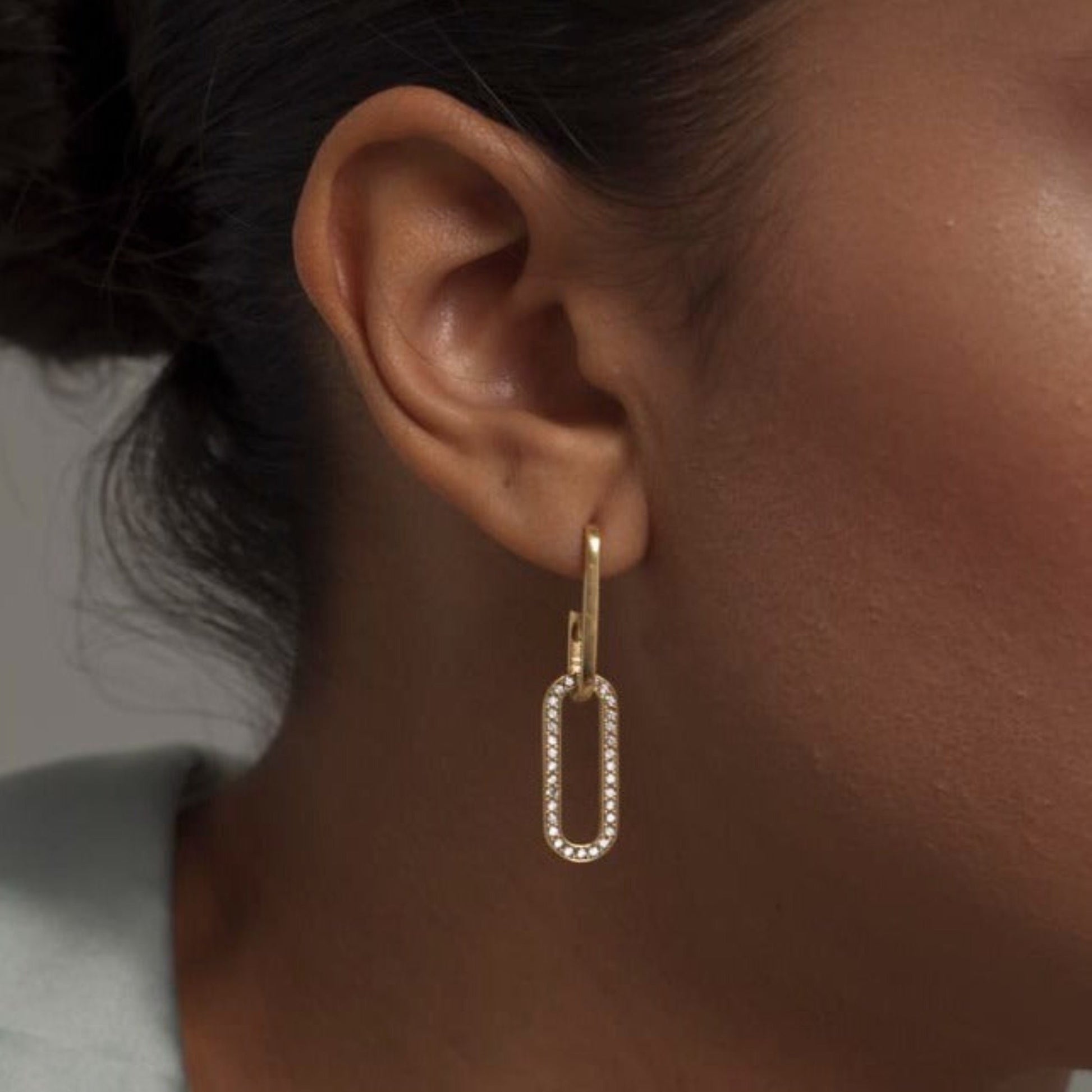 These stunning geometric shaped stud earrings set with high quality cubic zirconia stones are effortlessly elegant and thoroughly timeless.