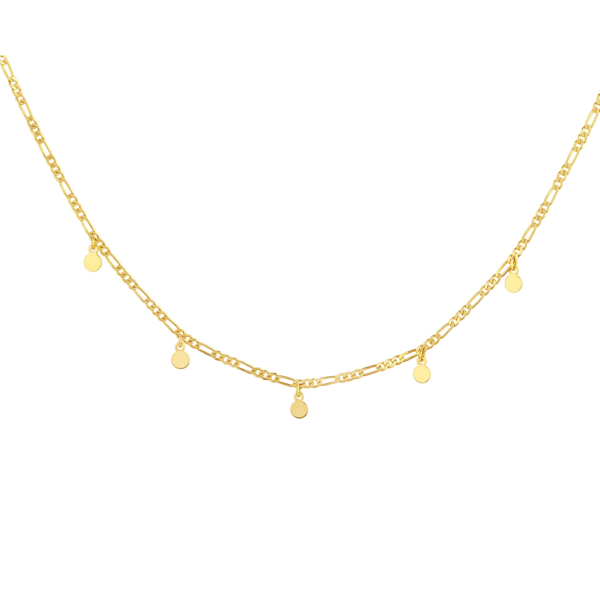 Elevate your style with our stunning 925 sterling silver necklace, beautifully plated in 18k gold. Featuring five mini coin charms, this piece combines timeless elegance with modern flair, making it the perfect accessory for any occasion. Whether you're dressing up or adding a touch of luxury to your everyday look, this necklace is designed to make a statement.